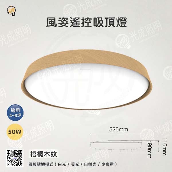 舞光 風姿雅緻遙控吸頂燈 50W (梧桐木/樟木)