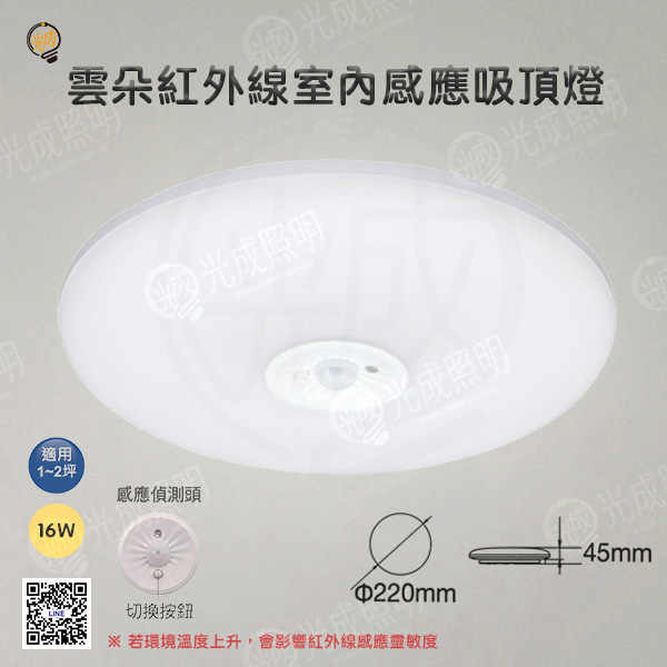 舞光 雲朵紅外線感應吸頂燈 16W
