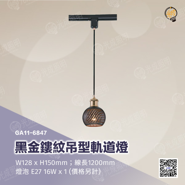 黑金鏤紋吊型軌道燈