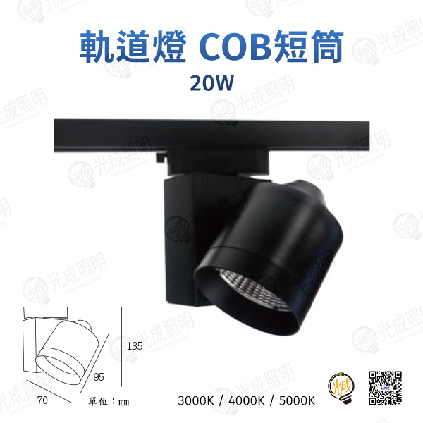 燈殼:黑、白 瓦數:20W 色溫:黃光3000K、自然光4000K、白光5000K 光源:COB模組 光角度:15°、30°、45° 電壓:100-240V 材質:鋁製品 尺寸:95 x 135 x 70mm