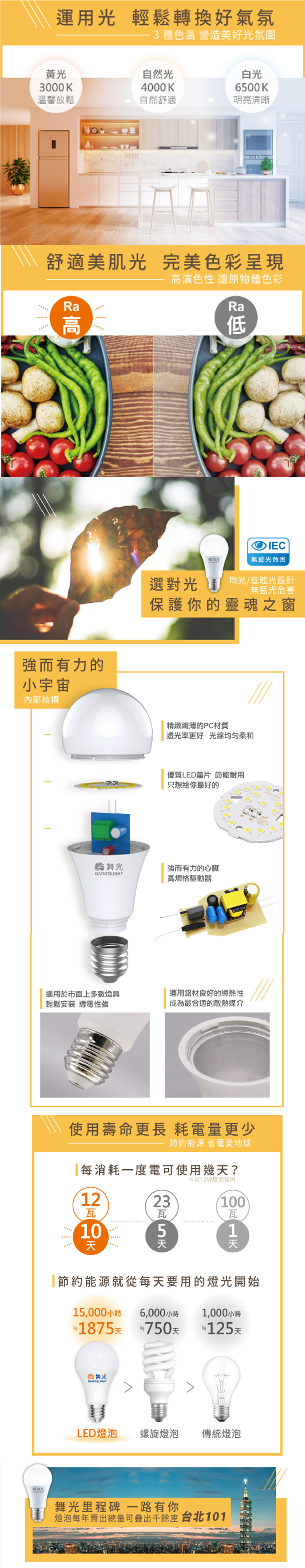 ✦ 使用壽命25000小時,一顆LED燈泡抵三顆傳統燈泡