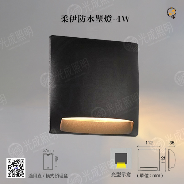 尺寸:長112 x 寬112 x 高35mm 瓦數:4W 色溫:黃光 3000K 光通量:200LM 演色性:≧ 80 電壓:100V-240V (全電壓) 驅動器:防水驅動器 (內含) 發光角度:120° 材質:壓鑄鋁、PC深灰色粉體防鏽烤漆 適用地點:餐廳、陽台、客廳、臥室、走廊、樓梯、廚房、商業空間等照明環境皆適用