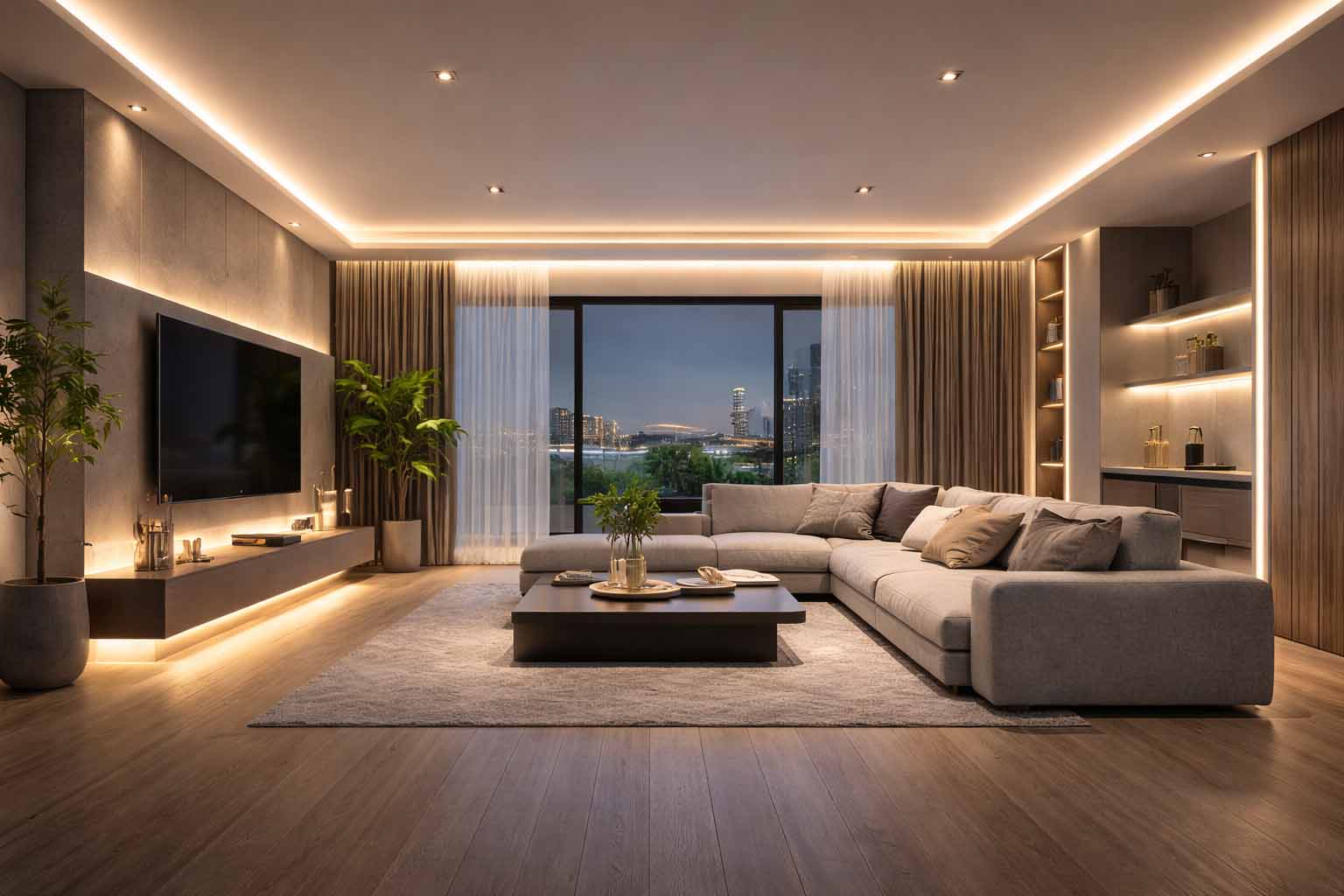 🏠 客廳臥室:天花板間接照明、層板燈