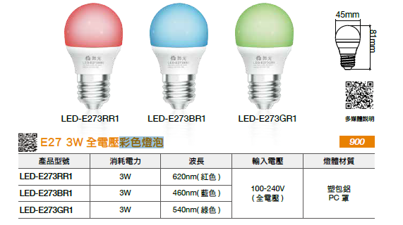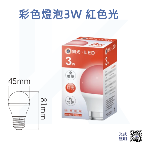 〔舞光 彩色燈泡 3W〕