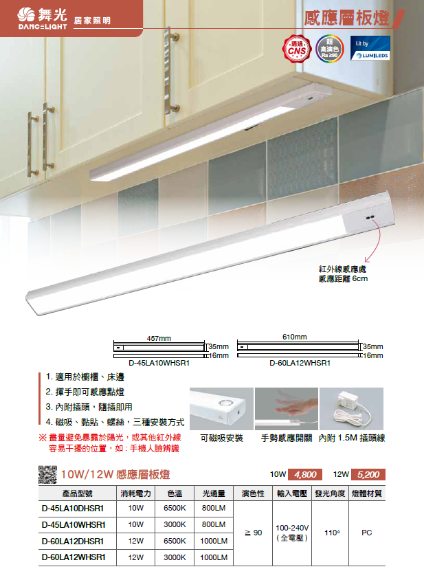 適用於櫥櫃、流理台、床邊等需要頻繁開關的空間,讓照明變得更加直覺便利