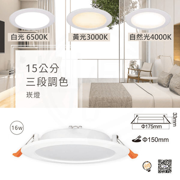 三段調色崁燈 是舞光專為現代空間設計的優質照明產品,提供三段可調光色(暖白光、自然光、白光),讓您能依情境自由切換,隨時打造理想氛圍。