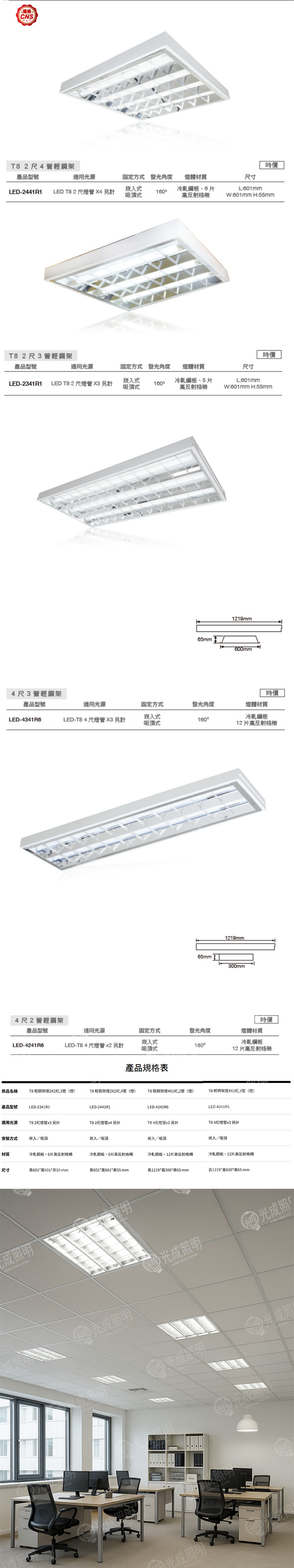 輕鋼架燈具含燈管|高效節能 ✨ 安裝便利 🔧 商業與辦公空間首選